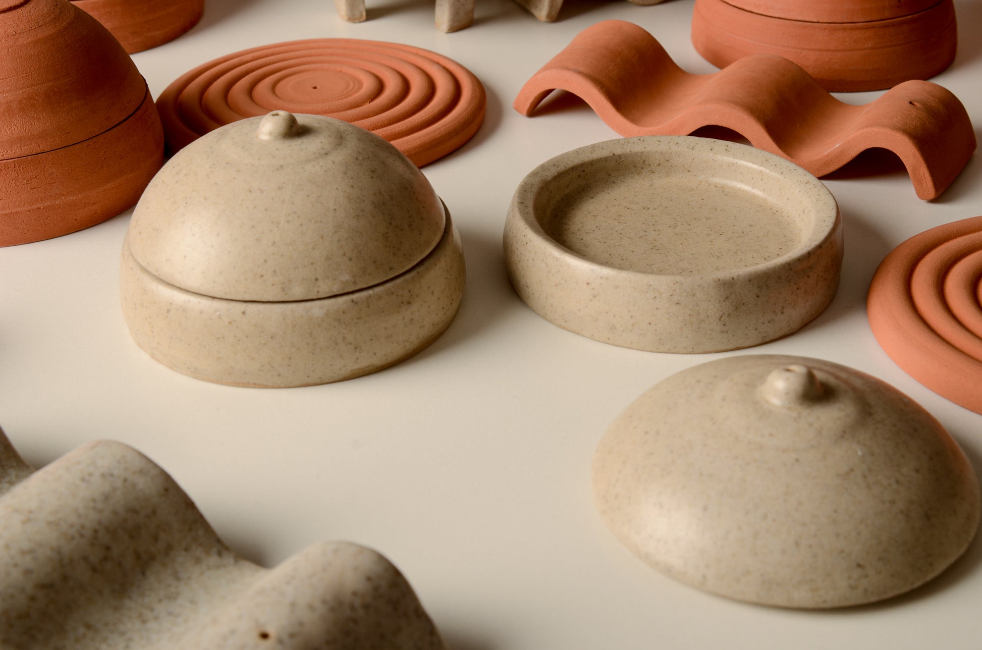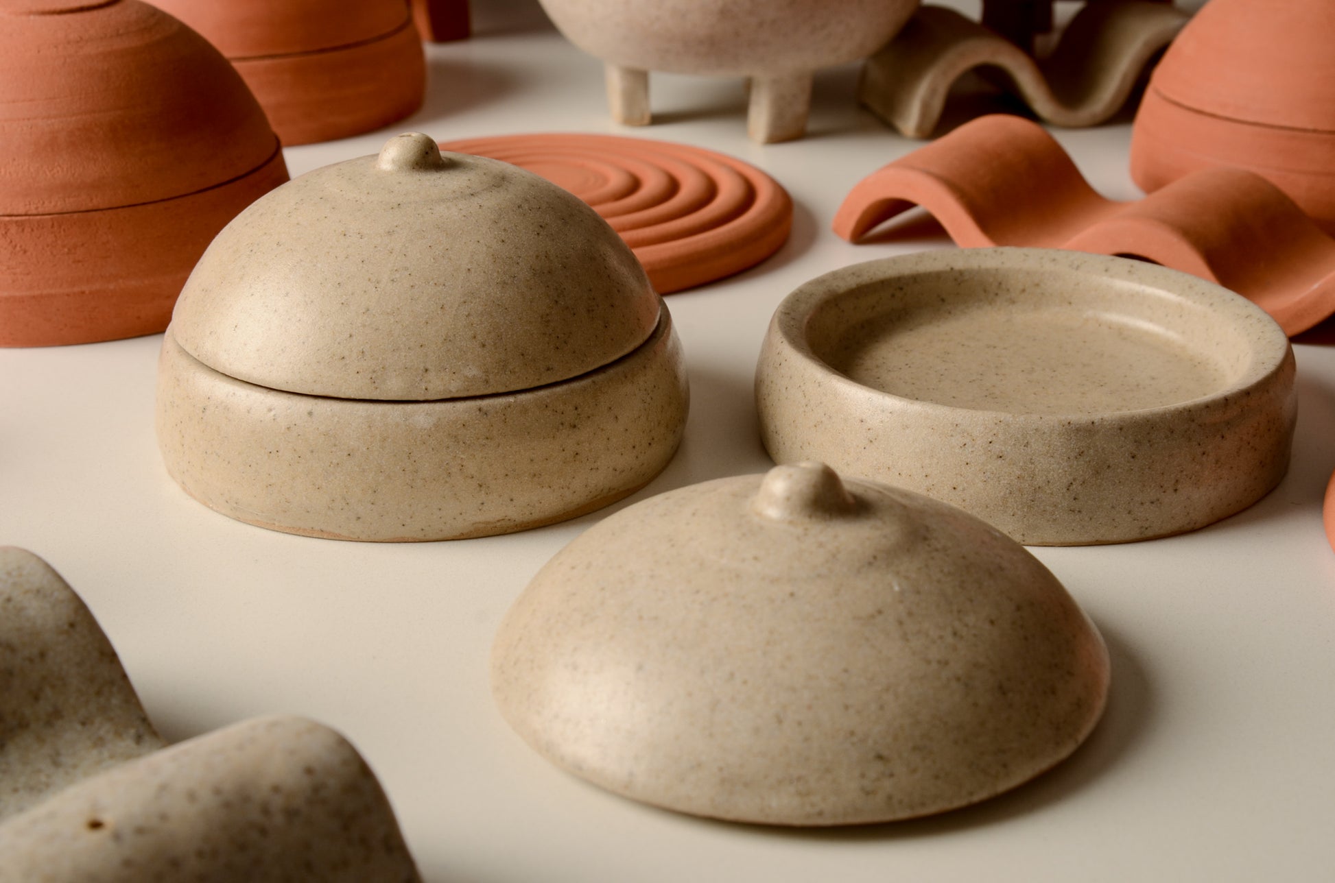 The Boobie dish is shaped and hand thrown on the potter's wheel and glazed with a semi matte speckled beige glaze.