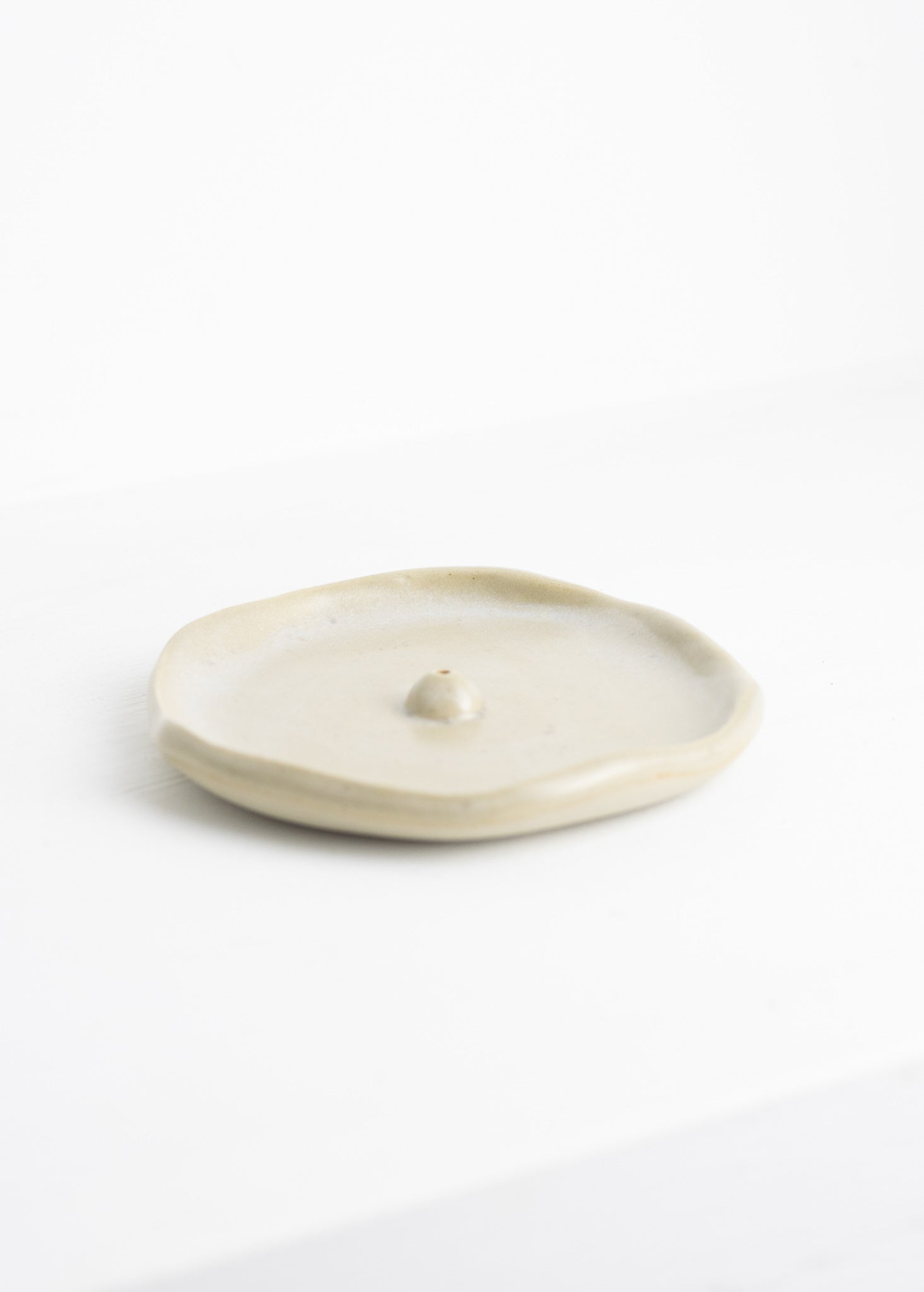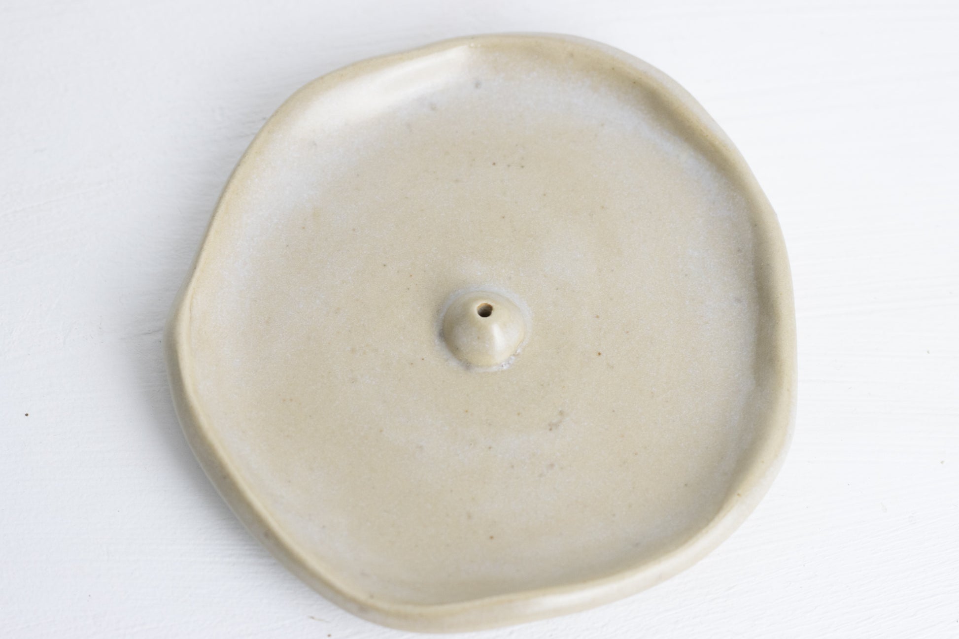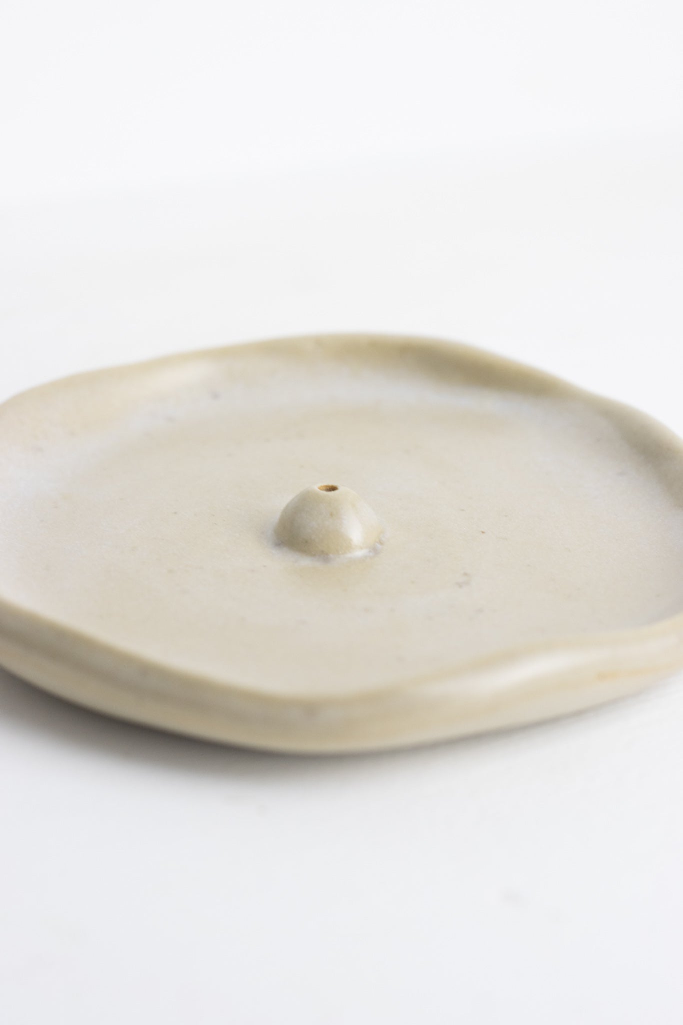 This incense holder is hand-built with clay slabs. Glazed in a satin mat beige glaze.