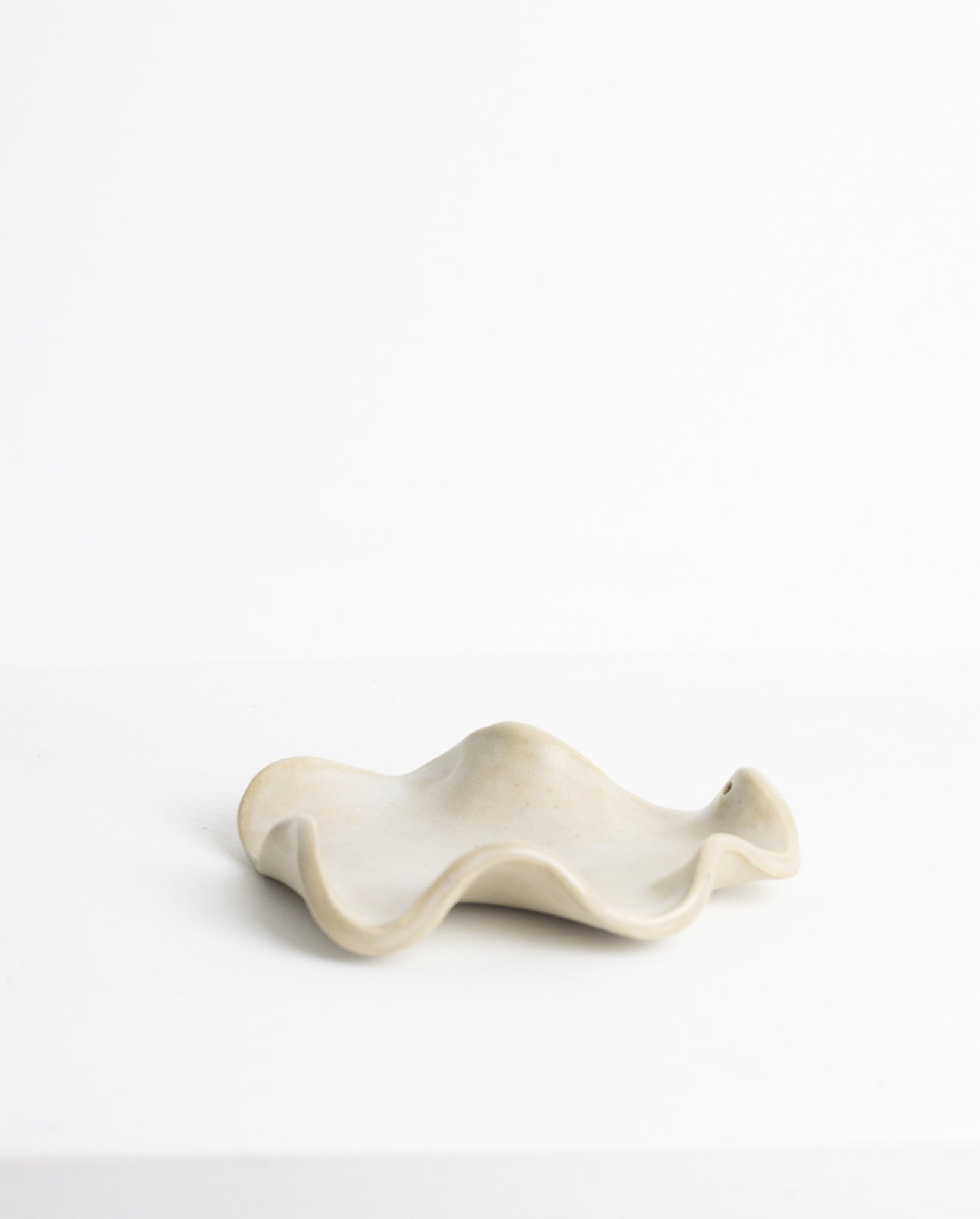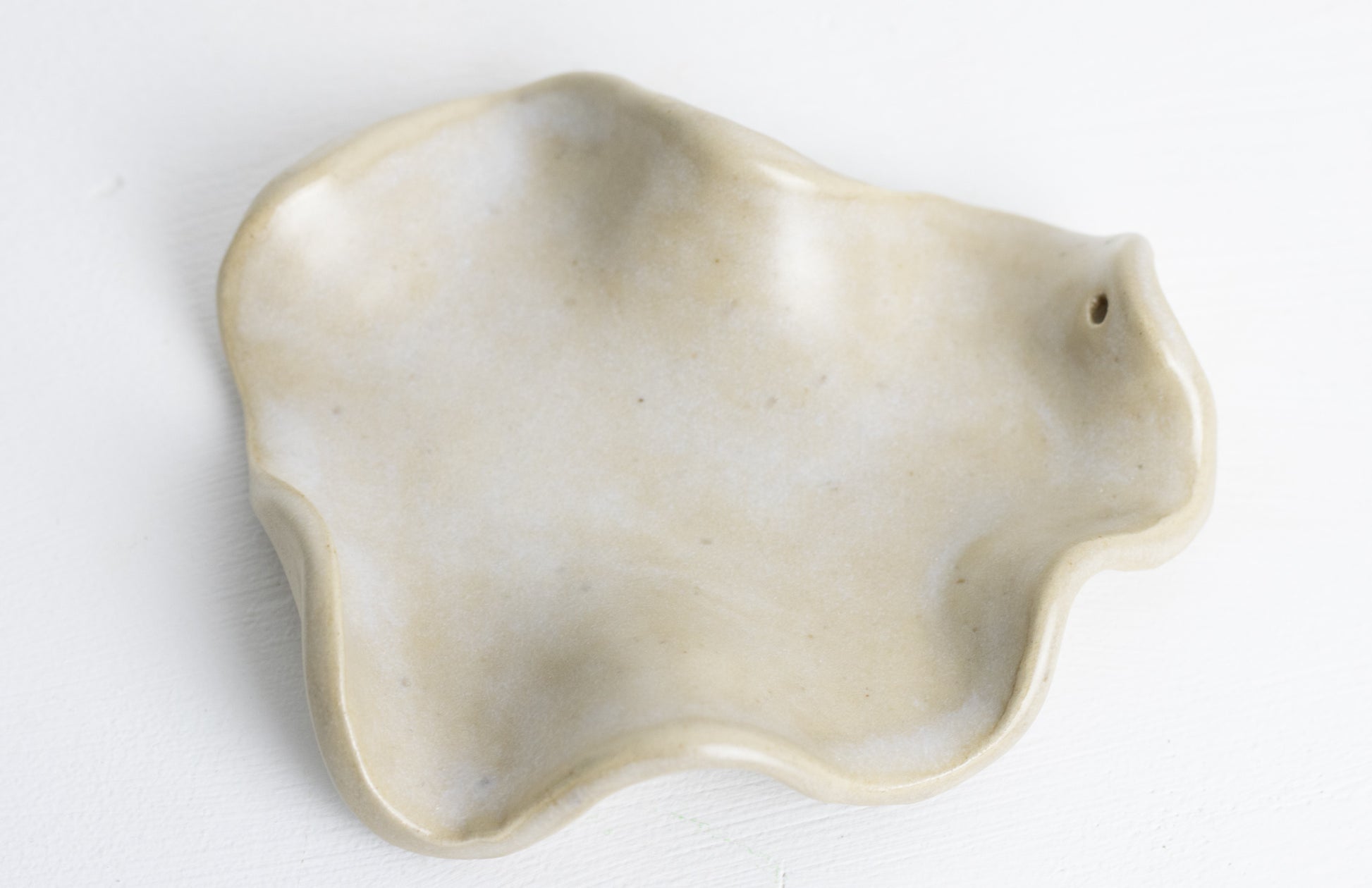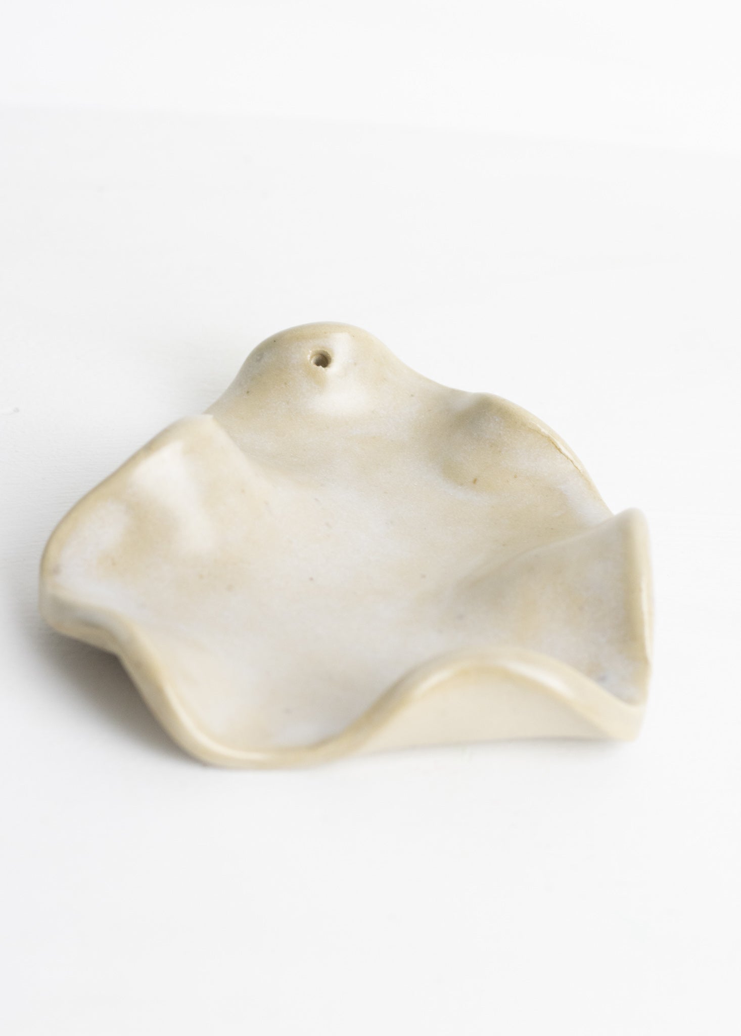 This incense holder is hand-built with clay slabs. Glazed in a satin mat beige glaze.