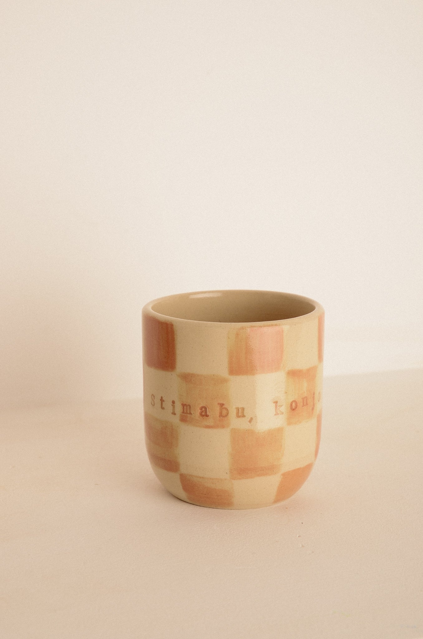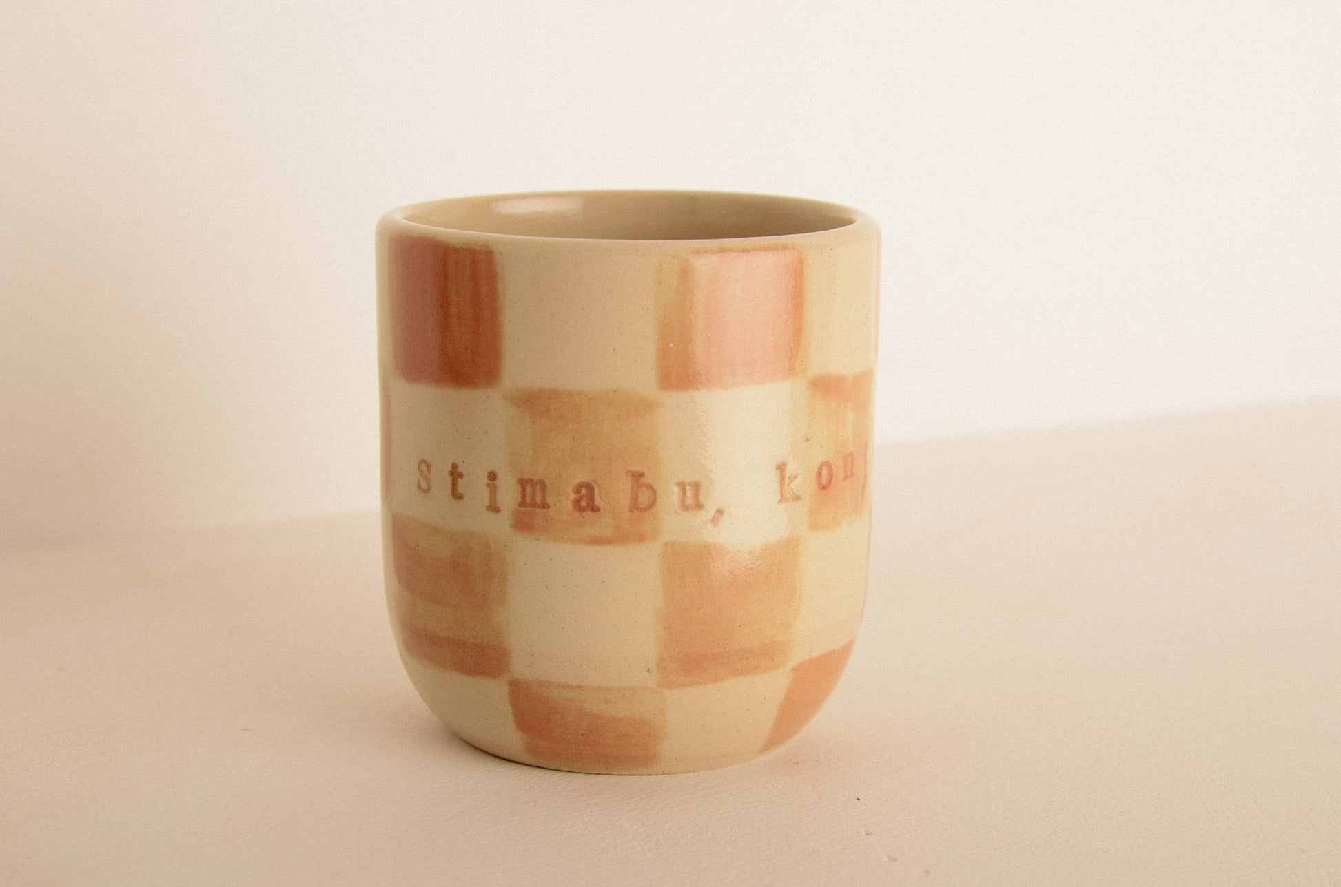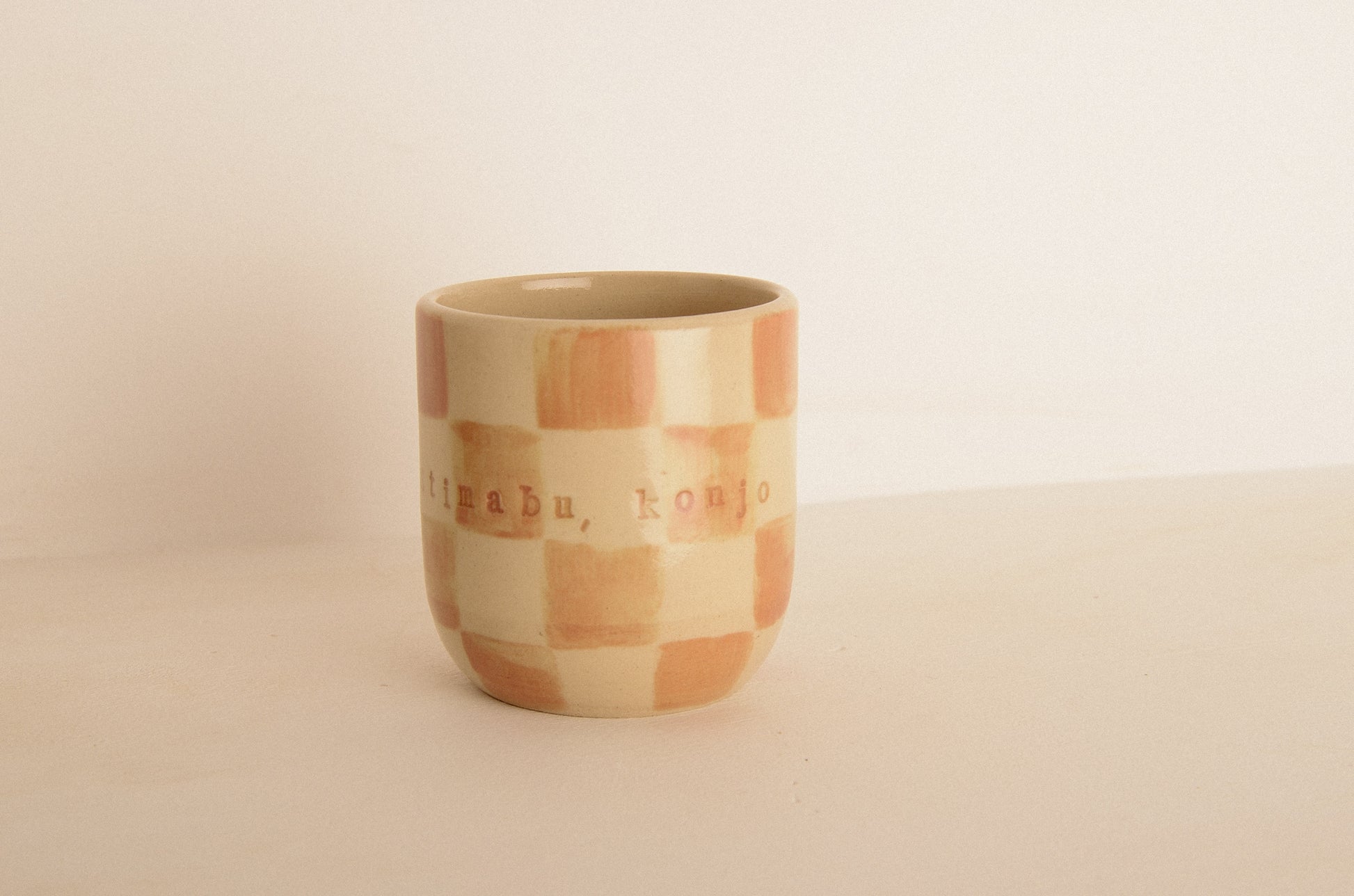 This cup is handmade on the potters wheel. With stamps is written: "Stimabu konjo"