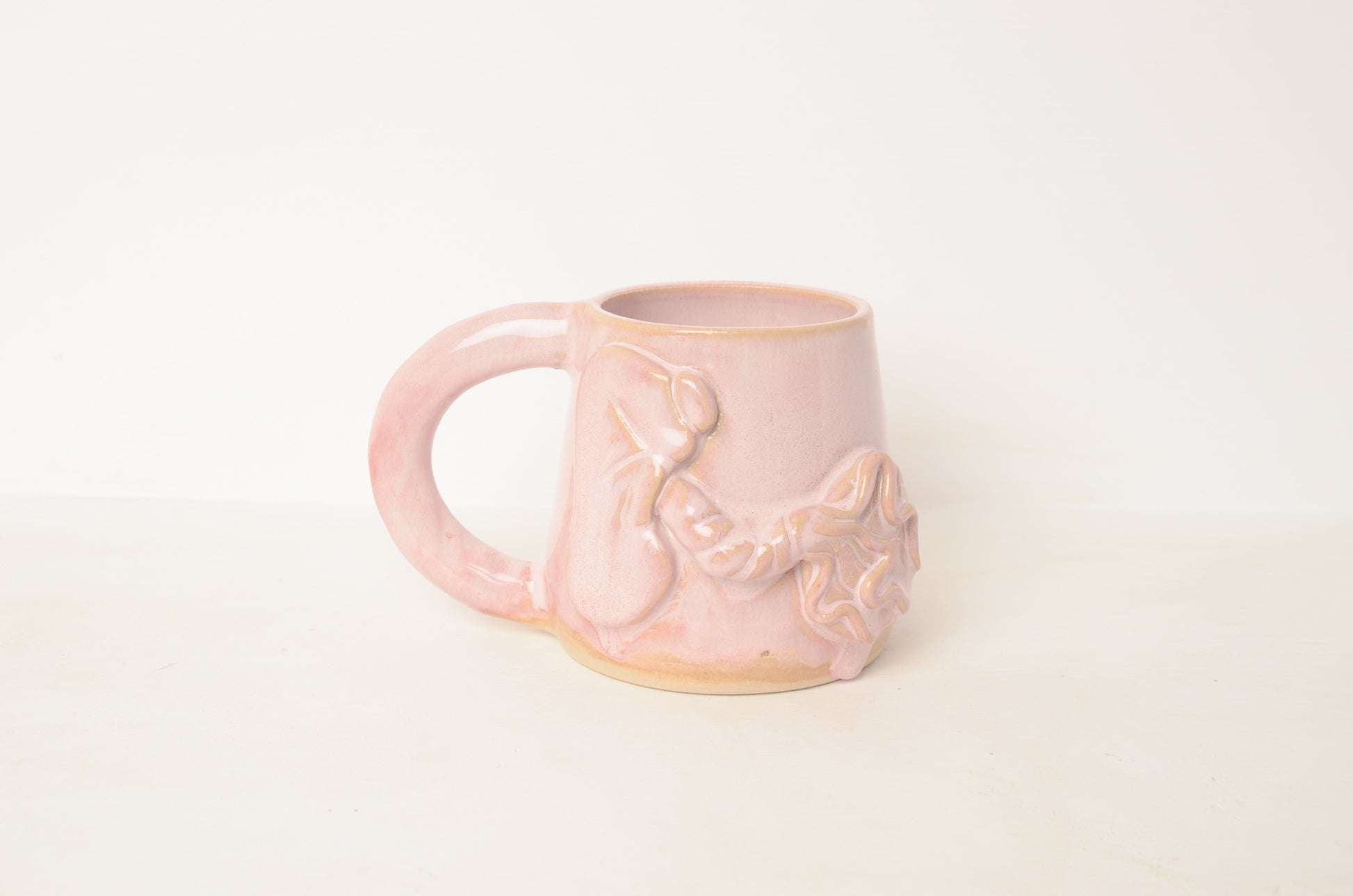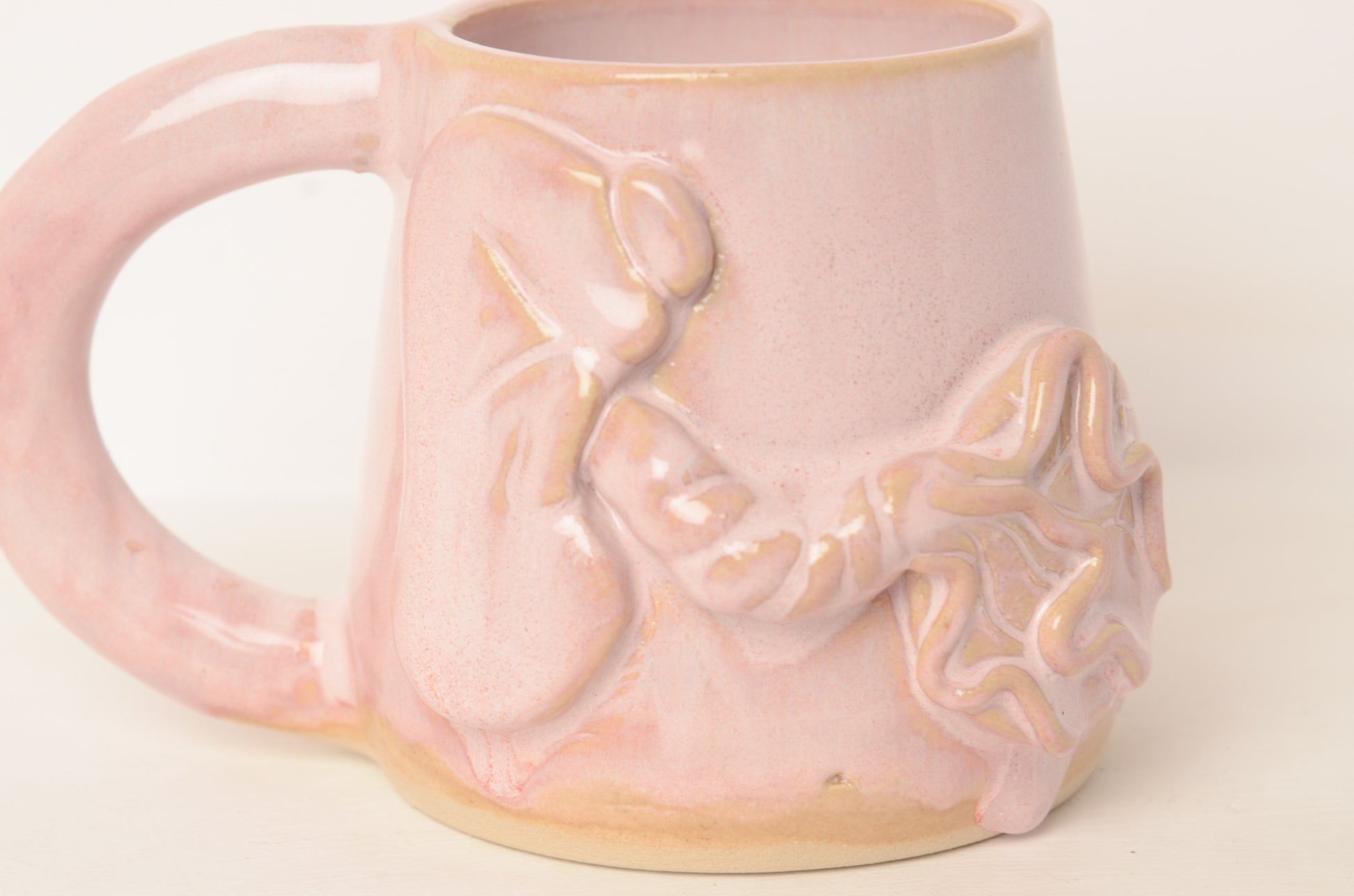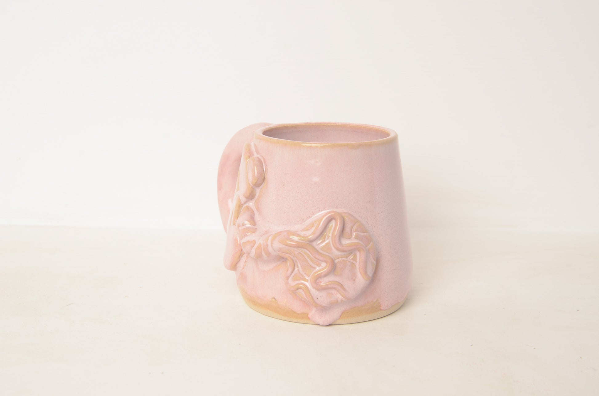 Thrown on the pottery wheel, and glazed with a glossy pink glaze. Not just a mug, but a vessel of narrative "First attachment" invites you to hold the weight of origin in your hands.