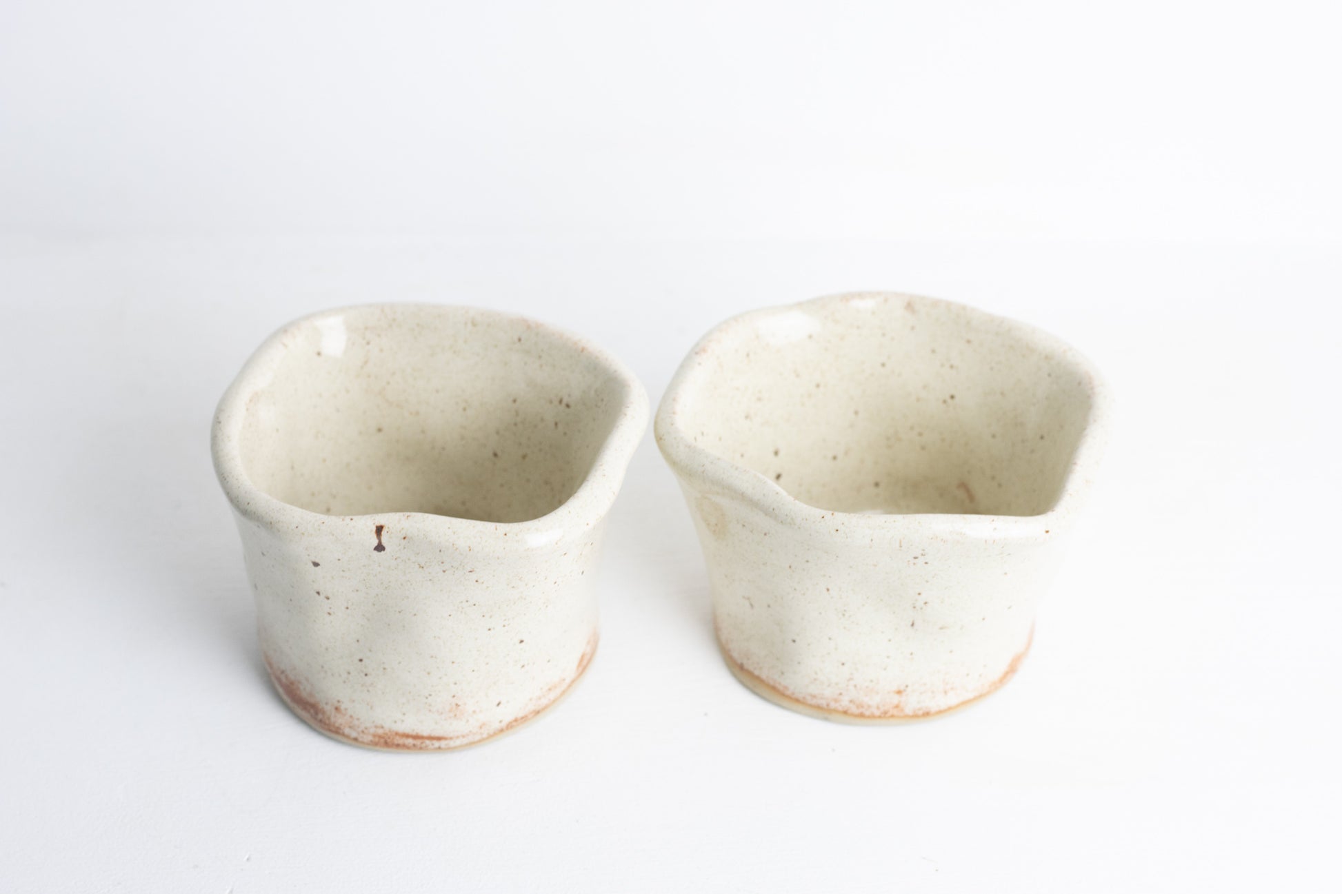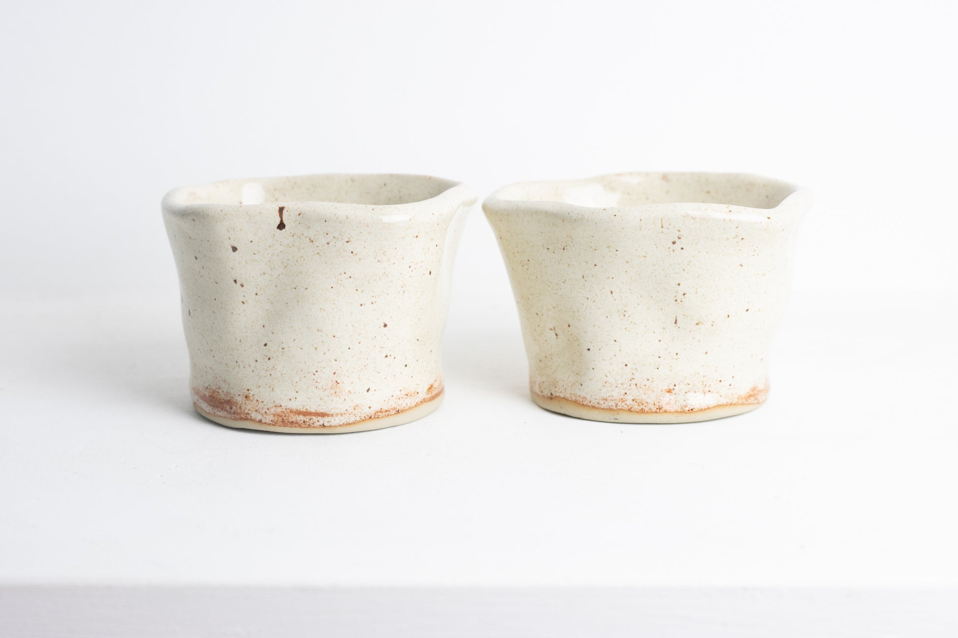 This wave cup is hand-built with clay slabs. Glazed with a shiny speckled beige glaze. The way your coffee or tea will sit in this cup is just so satisfying because of the shape! Truly a functional art piece.